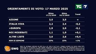 Secondo l’ultimo sondaggio condotto da Istituto Piepoli, pubblicato il 30 settembre 2025, il partito Democratico (PD) ha ottenuto un consenso del 28%, seguito dalla Lega con il 24% e dal Movimento 5 Stelle con il 18%. I sondaggi evidenziano una competizione ravvicinata tra i principali partiti, con una crescita significativa del partito di centrodestra, che ha acquistato terreno negli ultimi mesi. Inoltre, i cittadini mostrano un crescente interesse per i temi socioeconomici, come la disoccupazione e la crisi energetica.