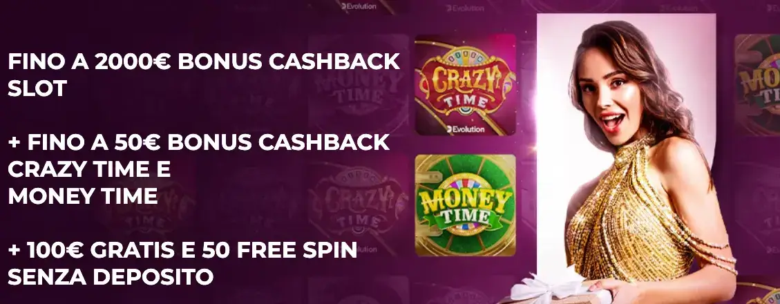 Tra le offerte citate, alcuni esempi significativi emergono come riferimento per valutare i migliori bonus. Un casinò propone cashback sulle perdite nette fino a 2.000€, con limiti specifici quali 50€ applicabili solo su giochi come Crazy Time o Money Time; la stessa offerta include 100€ di fun bonus gratuito e 50 free spins senza deposito per la slot del momento.