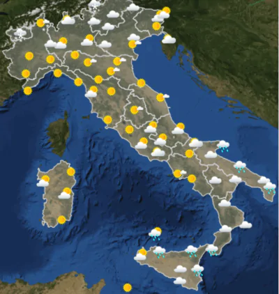 Nelle linee generali è atteso un deterioramento delle condizioni meteo con l’arrivo su parte dell’Italia di pioggia, vento e nevicate che date le temperature in sensibile calo potrebbero cadere fino a bassa quota. Al Nord, le condizioni potrebbero favorire episodi nevosi in pianura, particolarmente su Piemonte e Lombardia.
